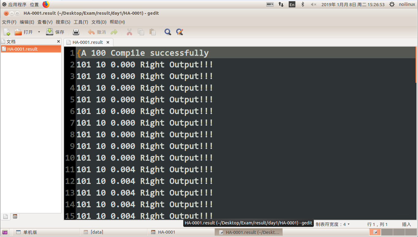 评测完后,可以查看相应的成绩,在result文件夹下对应场次中找到选手,打开.result文件即可查看对应的单测试点时间、成绩及信息。